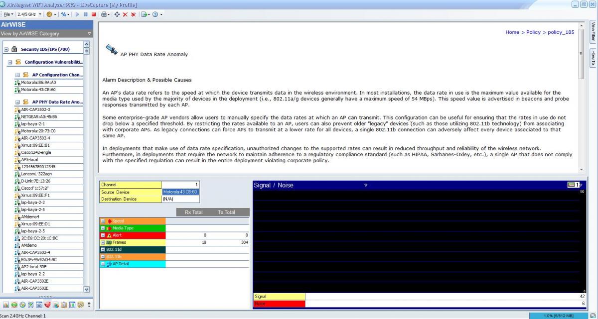 AirWISE? 引擎可自動(dòng)檢測(cè)整個(gè)頻譜上數(shù)十種無(wú)線網(wǎng)絡(luò)故障處理問(wèn)題的根源。在對(duì) Wi-Fi 網(wǎng)絡(luò)帶來(lái)影響之前,AirWISE? 能主動(dòng)識(shí)別并解釋數(shù)百種威脅和性能問(wèn)題,用戶現(xiàn)在無(wú)需手動(dòng)解釋復(fù)雜的數(shù)據(jù)包解碼和無(wú)線數(shù)據(jù)。通過(guò)用戶友好的 AirWISE? 界面,可為用戶提供詳細(xì)警報(bào)分析、額外的診斷數(shù)據(jù)和糾正措施的建議。