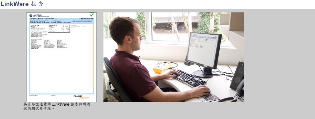 將 OLTS 第 1 層(基礎(chǔ)層)和 OTDR 第 2 層(擴(kuò)展層)和光纖檢測(cè)圖像與認(rèn)證結(jié)果整合到一份報(bào)告中,這樣便可同時(shí)管理多項(xiàng)工作。用戶可在將 報(bào)告交給客戶進(jìn)行系統(tǒng)驗(yàn)收之前將公司標(biāo)志添加到報(bào)告上做潤(rùn)色。保持業(yè)務(wù)工具的簡(jiǎn)便性。無(wú)論您使用哪種 Fluke Networks 布線認(rèn)證測(cè)試儀,LinkWare PC 均可以報(bào)告所有內(nèi)容。
