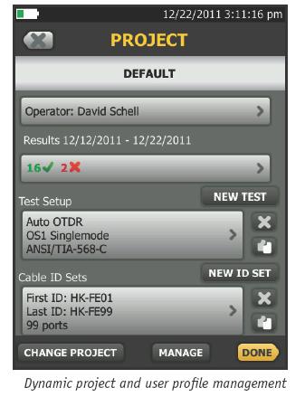 合理安排日常使用對更大化 OTDR 的價值有重要意義。項目經(jīng)理可通過 OptiFiber Pro 內(nèi)置的項目管理定義各用戶的角色、設(shè)置和關(guān)聯(lián)要執(zhí)行的任務(wù) – 使 OTDR 成為可計劃、檢查、認證和報告的光纖測試工具。