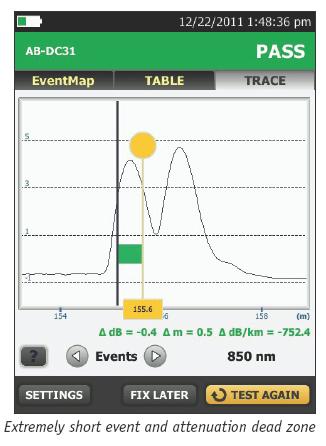 ● 超短事件和衰減死區(qū)可定位事件和光纖連接中的故障