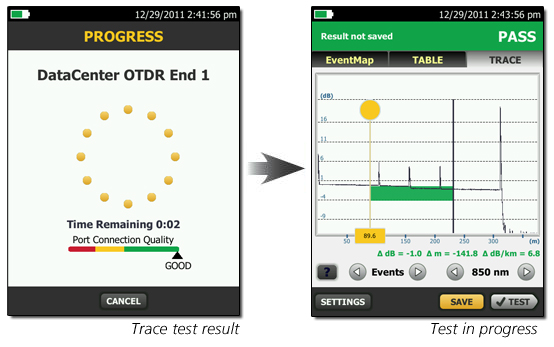 OptiFiber Pro 的劃時代意義在于其采集速度。在“快速測試”模式下,每波長只需短短兩秒即可采集到一套完整數(shù)據(jù)。OptiFiber Pro 然后分析數(shù)據(jù)并將其作為 EventMap、Table 或 Trace 顯示出來。最終結(jié)果是使用了更少的時間,從而可將更多時間用到其它工作上。